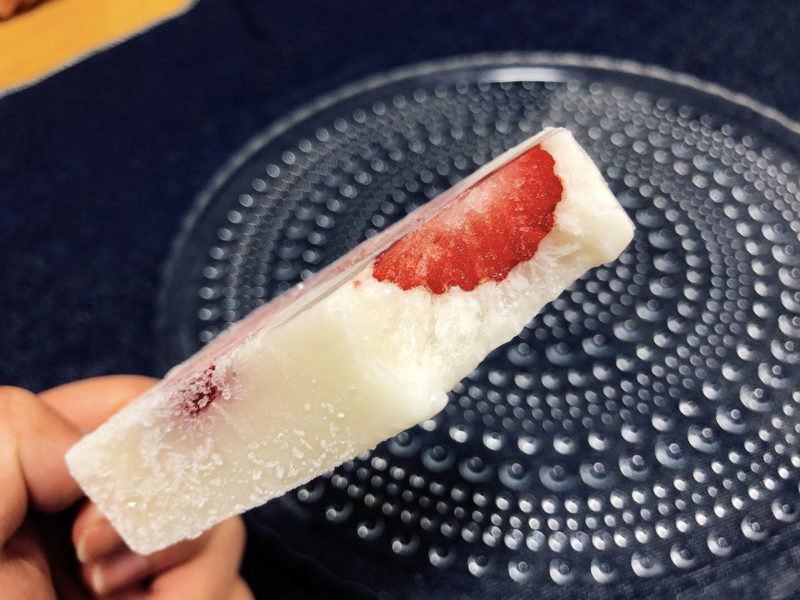 さらに外側のミルクアイスにもイチゴが使われており、口の中でいちごの風味が爆発します。まさにいちご爆弾!
