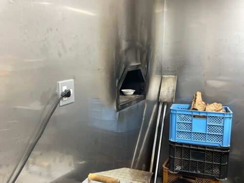 窯は壁に埋め込まれている形になっており、店内から見えるのは入口のみです。