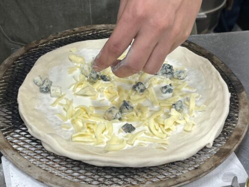 クアトロフォルマッジも、ブルーチーズを入れるバランスなどを考慮しながら、ベストな配合でトッピング。