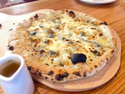 クワトロフォルマッジは、+100円で御船町産100%ハチミツに変更可能だったので、迷わず変更。