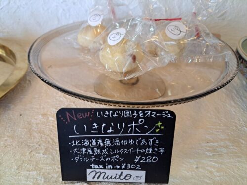Muitoでは貯蔵庫で2か月以上熟成された「道の駅 大津」認定のシルクスイートの焼き芋も購入できます。