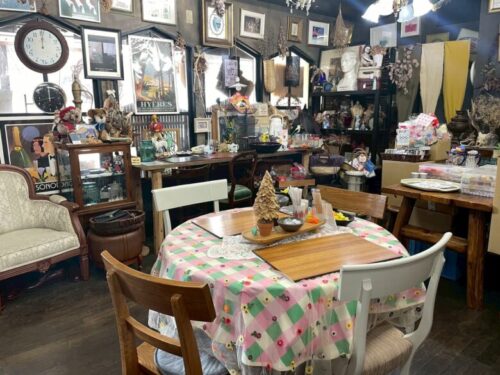 アンティークや雑貨類が並ぶ空間