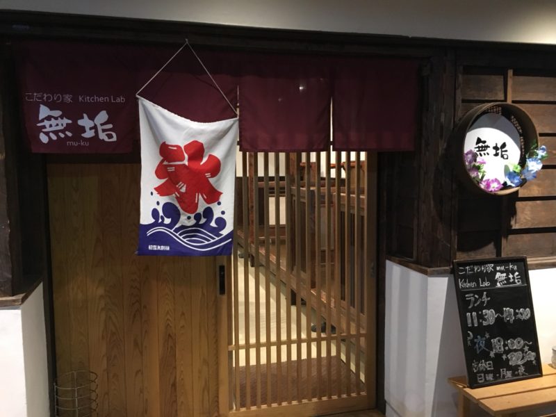 こちらが尾ノ上にある「こだわり家 Kitchen Lab 無垢」。氷の旗と朝顔が涼しげな、風流な店構えです。
