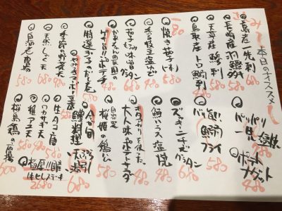 料理の方は定番メニューに加え、「本日のオススメ」も充実しています。