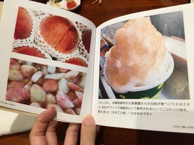 こちらがかき氷メニュー。河内晩柑やでこぽんなど、魅力的な果物がいっぱい!