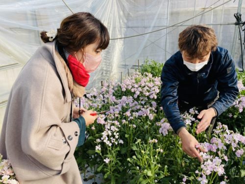 熊本県の北東部に位置する、標高800mの山奥で花の生産。白石さんの代から花づくりを始め二十数年自然と向き合いながら、この地にあった栽培を考えて、今では一年を通して多品目栽培に取り組んでおられるそうです。熱い想いをお聞きしました。そしてなんとこのストックの花びらで作ったドレッシングなども販売もされています。shiraishi flower farmこちらのサイトからご覧いただけます。