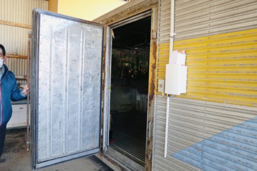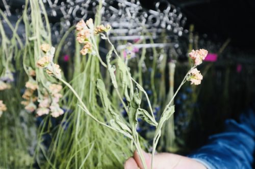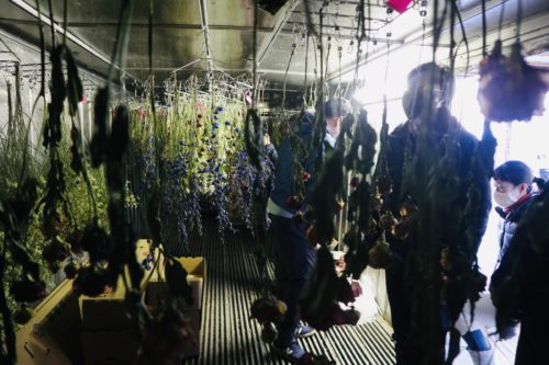 たくさん~!こちらはドライフラワーを作られているコンテナでした。自宅でも出来るドライフラワーですが、急速にあたたかくし、水分を飛ばすことで美しいものが出来るとか。