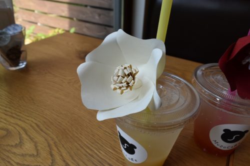 フルーツフラワードリンクに付いているお花も一つひとつ手作り。取り外しができるので、指輪にされる方もいるとのこと。手作りできるキットも販売されていました。