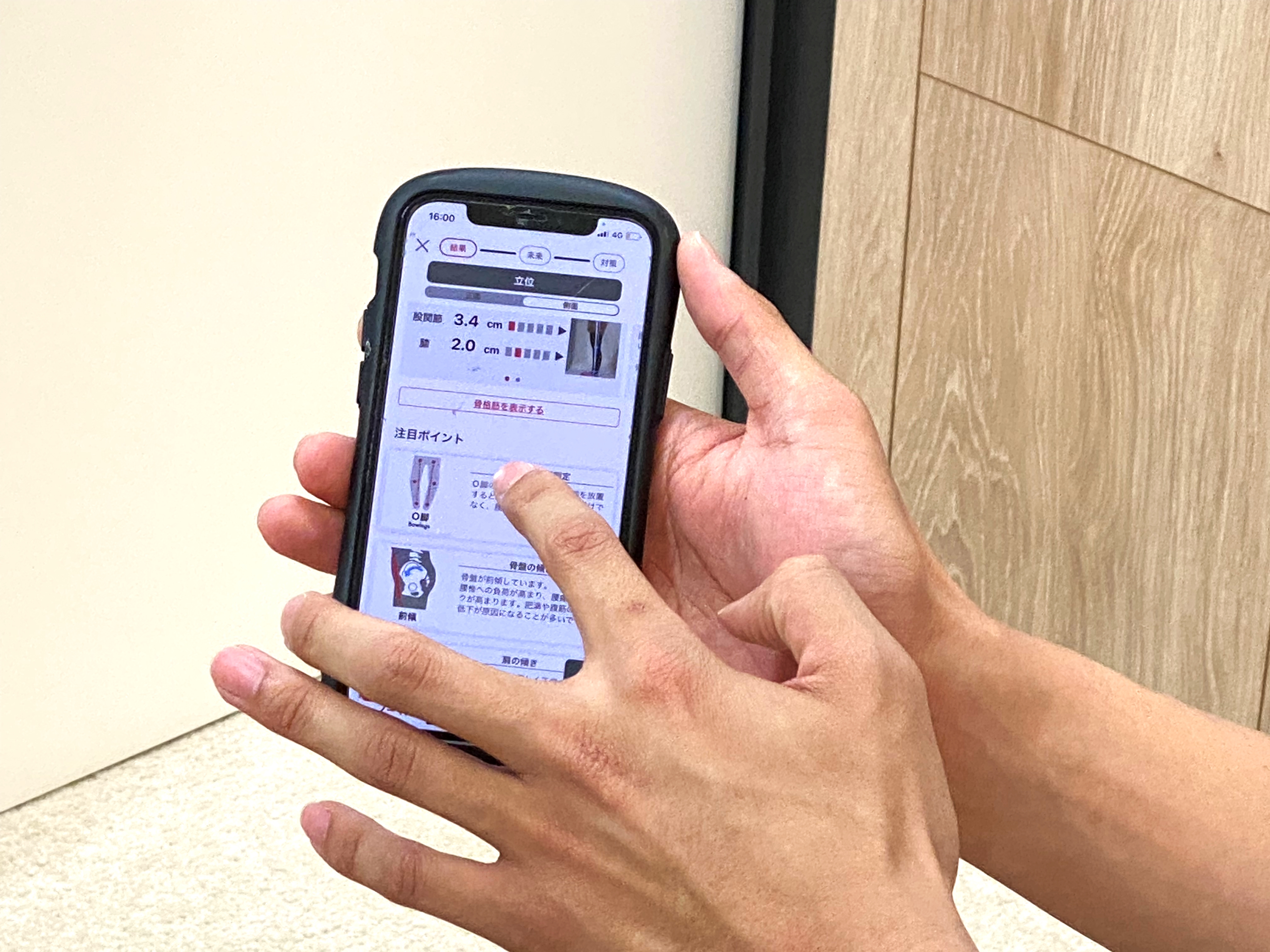 さっき撮った写真で体の歪みが測定されていました。ナニコレ凄い!今まで言われたことがない部分の歪みが分かったり、太いなーっと思っていた体の部分が実は歪みからきていたものだったとか知らなかったことばかり!