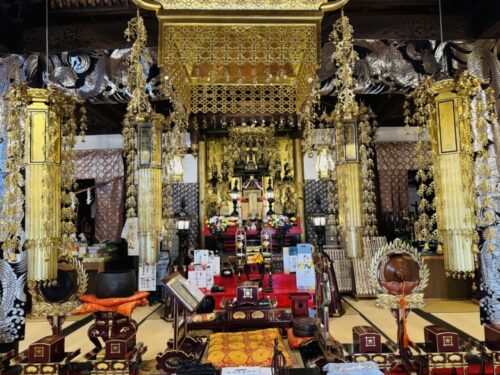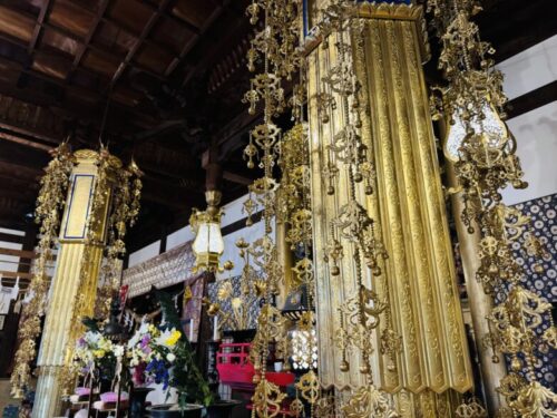 中はキラキラ。瓔珞 (ようらく)がものすごいです。瓔珞とはお仏壇を美しく装飾するとともに、魔除けの役割も果たすと言われているそうです。