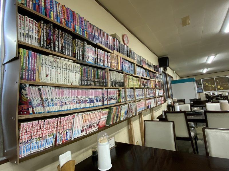 この漫画がずらーっと並んでいているのも、昔ながらの食堂といった感じがしますよね。
