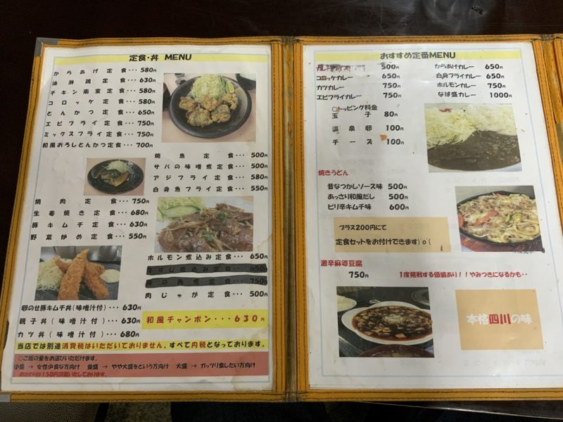 メニューをみると、定食が豊富で、丼もあります。カレーも種類豊富で、カレーライスは500円。
