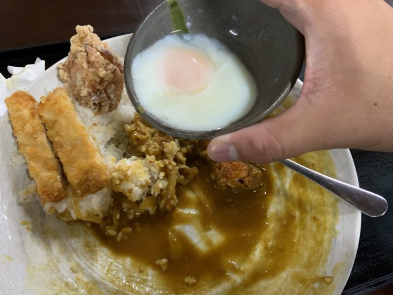 温泉卵がついているので、途中でかけることにしました。