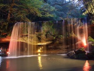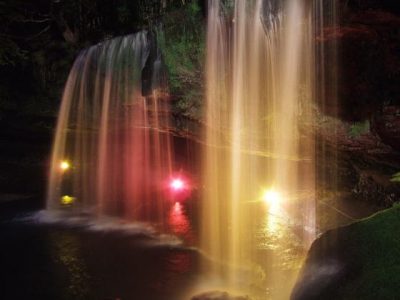 全国でも類を見ないほどの美しい滝ということで有名ですが、ライトの掛け方によっては、ここまで表現が変わるものなのですねぇ。。