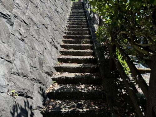 階段を上がって右側に行く様子です。歩く道は綺麗にされておりますが、草が生い茂っているので、色んな装飾を見つけるには冬の方が観光には向いていると思います。