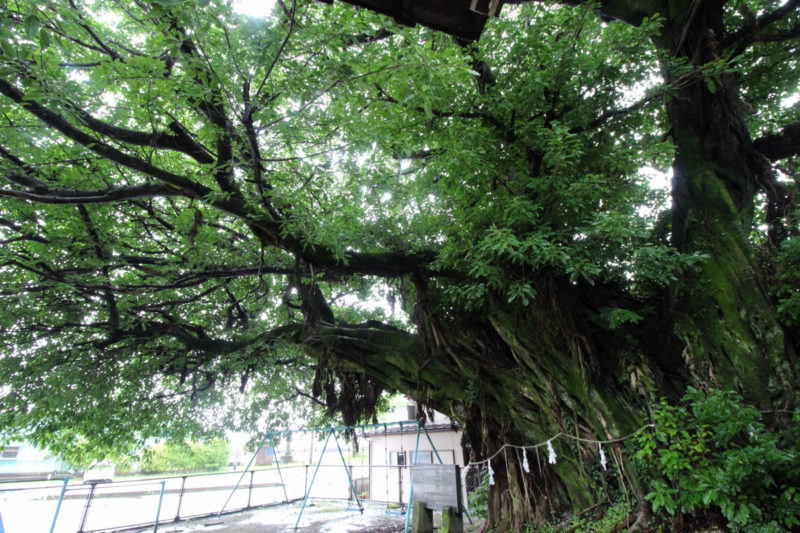 高さ約15m、幹まわりが約11.2mで、樹齢は300年以上と推定されます。ご神木として、地域の人たちによって大切に守られてきました。