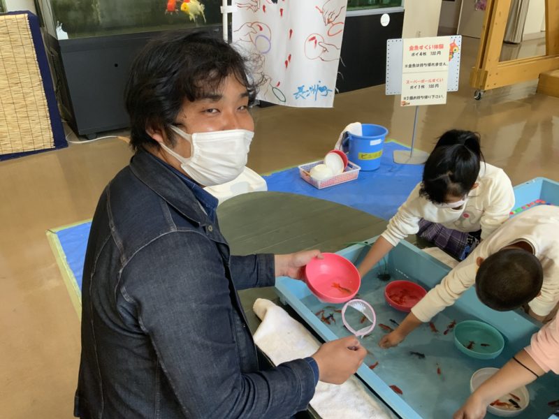 夏生さんは町内の金魚すくい大会で連続優勝し、全国大会に進んでいる腕前です!お姉さん、弟さんも負けじとすくいますよ!!