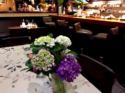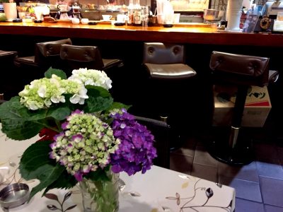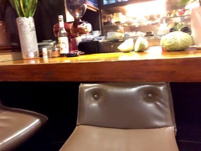 店内は右手にカウンターがあって8席くらいでしょうか。センターにテーブル席があり、その他にテーブル席が6席ほどあります。ほの暗い落ち着いた雰囲気です。