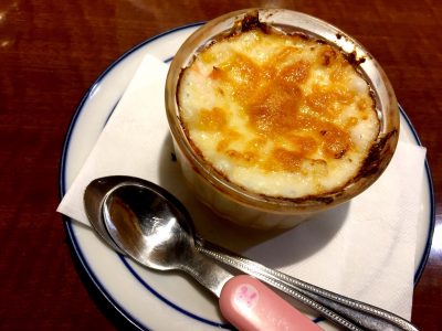 ちょっと小腹がすいた時、もう少し食べたいとき、付き合いで一緒にお店へ来たけどそんなに食べたくなくて…という時に、このぐらいだったら食べる事出来るかな?と感じるサイズのグラタンだと思います。