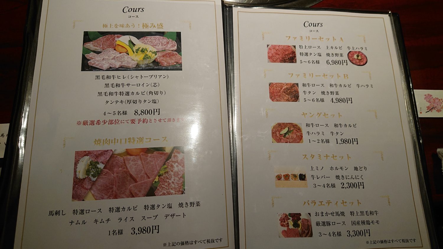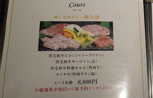 メニューは極み盛(4・5人前で8,800円)からファミリーセットなどいろいろなお肉を味わえるコース