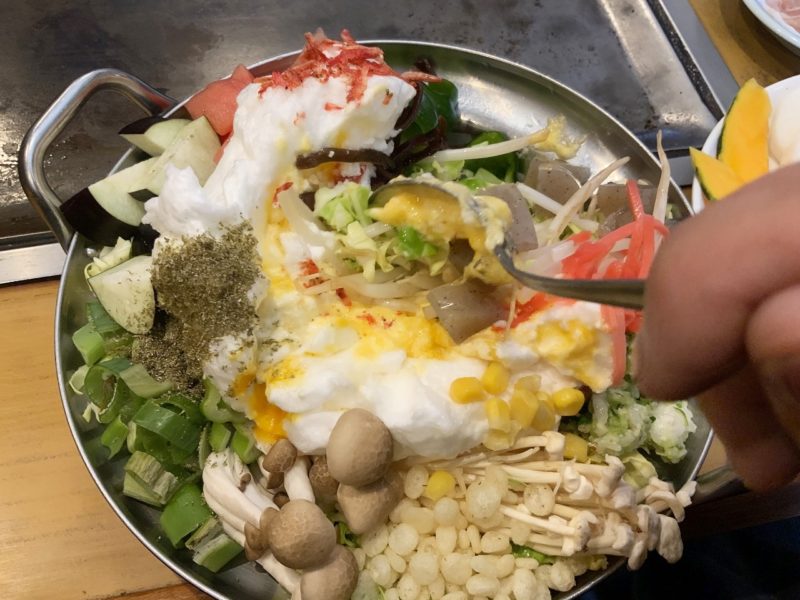 この「なんでも野菜たっぷり焼き」。野菜の数もさることながら、ボリュームもスゴい。