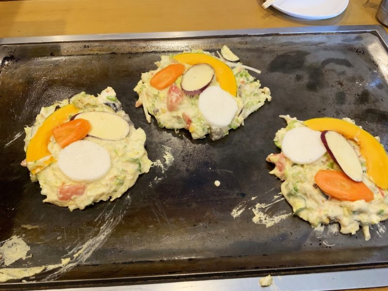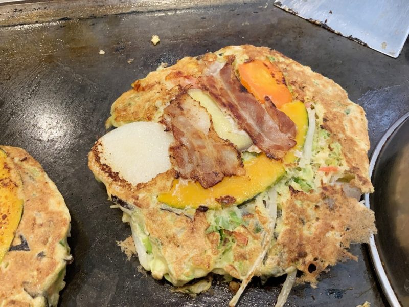 こんなに野菜がたくさん入ったお好み焼き、初めて食べたかもしれません。