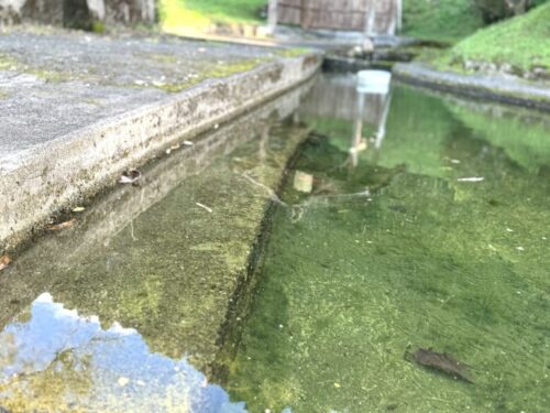 そこには水神様が。こちらの水源は生活用水として利用されるほか、農作物や農機具の洗い場として大切に使用されているとの事。子供たちが貯水池に入って水遊びをして遊んでいたとの記載もありました。のどかな風景ですね。