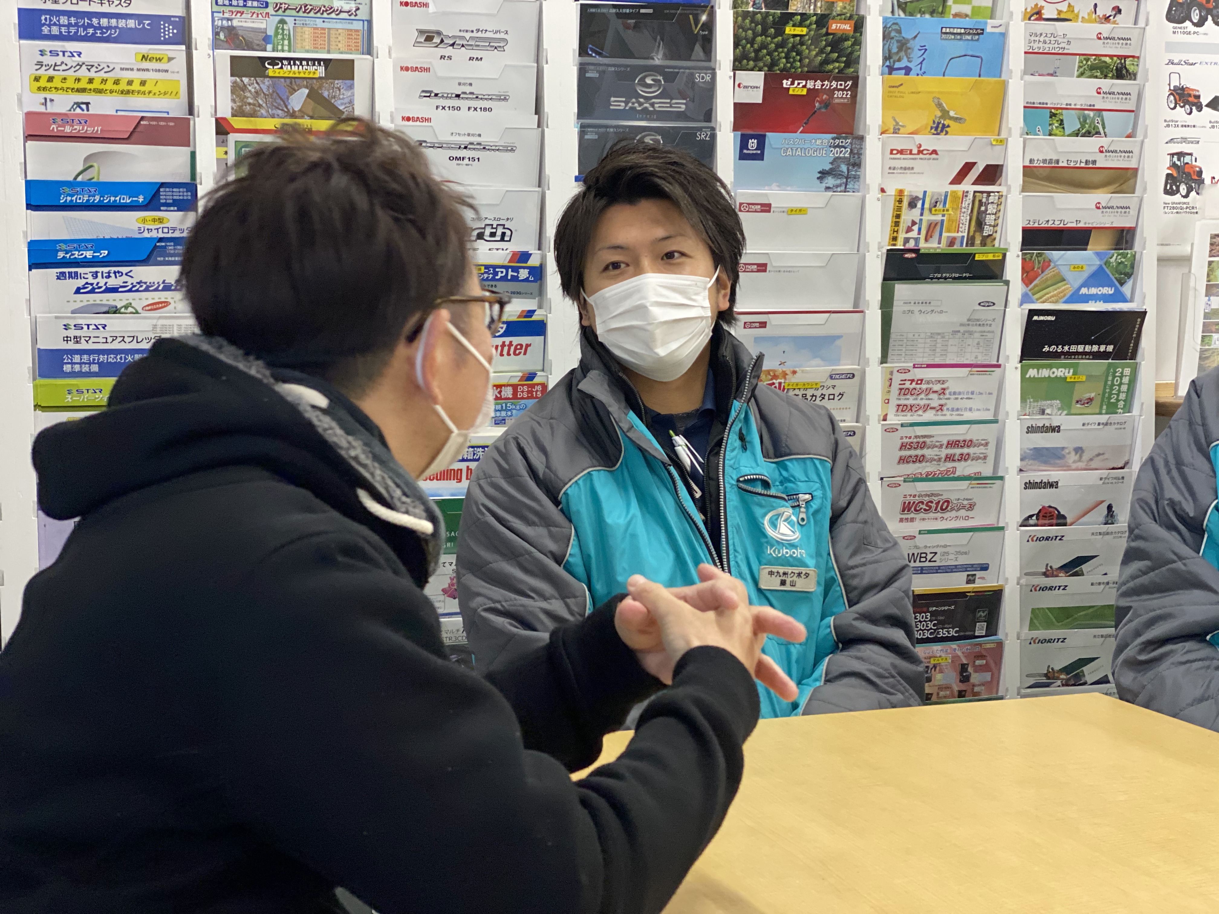 「単に農機具を売って終わりではなく、そこからお付き合いが始まるんですよ。僕も色々勉強させてもらう事の方が多くて」