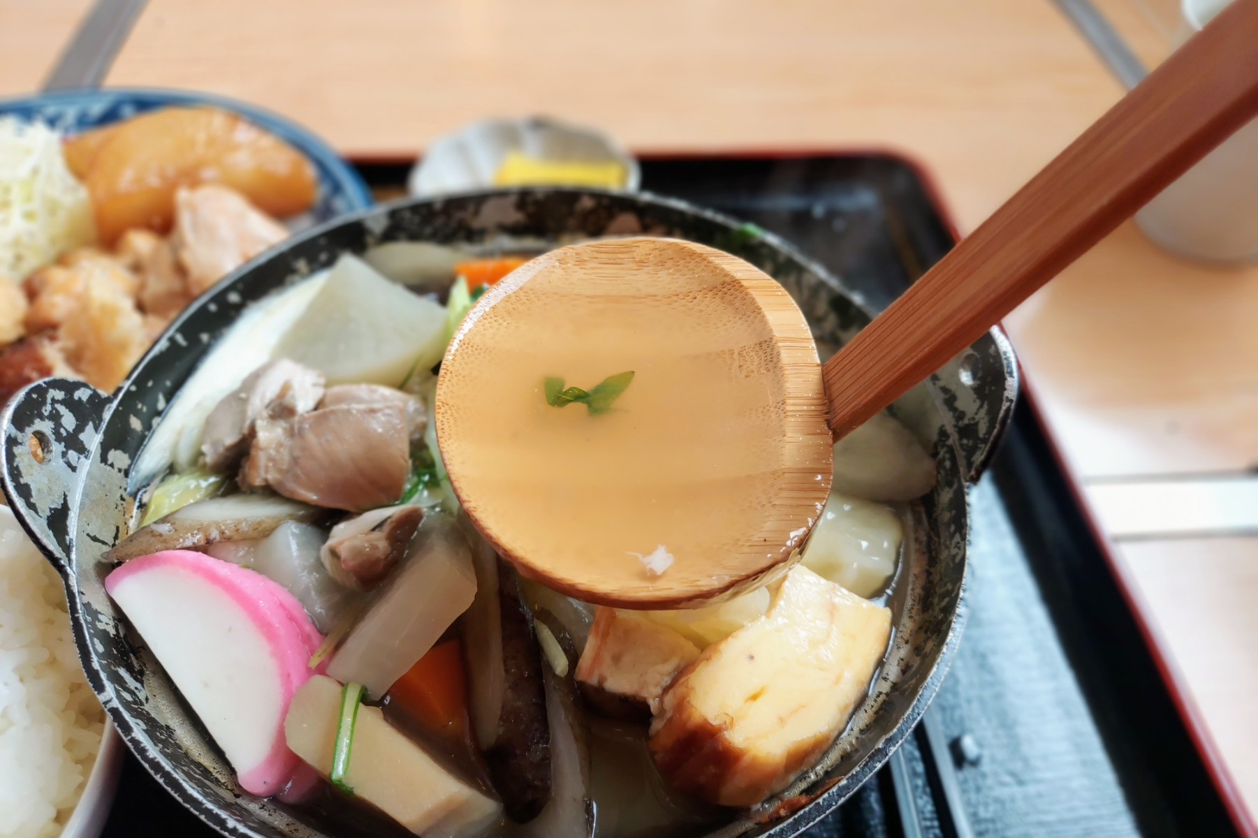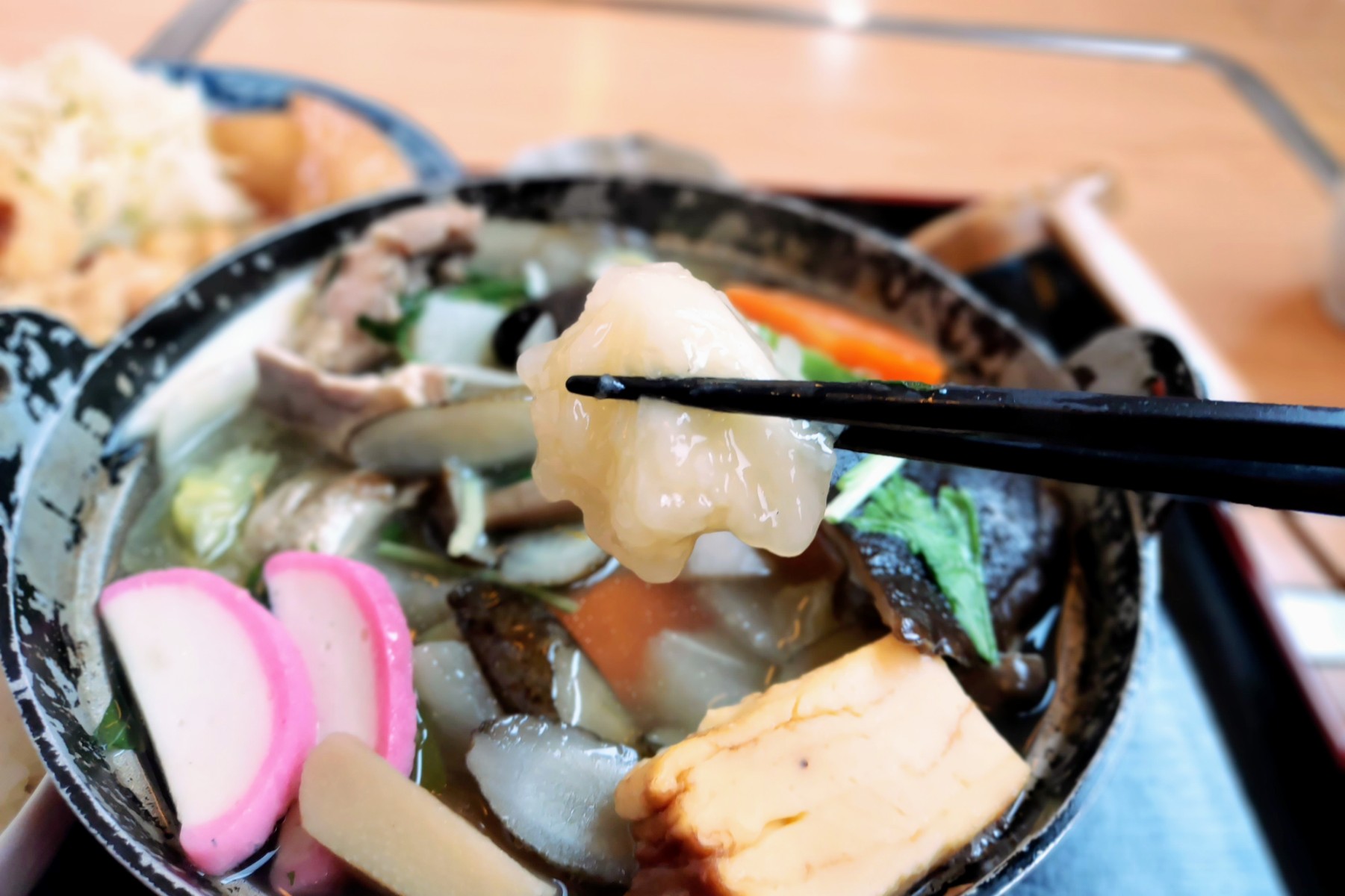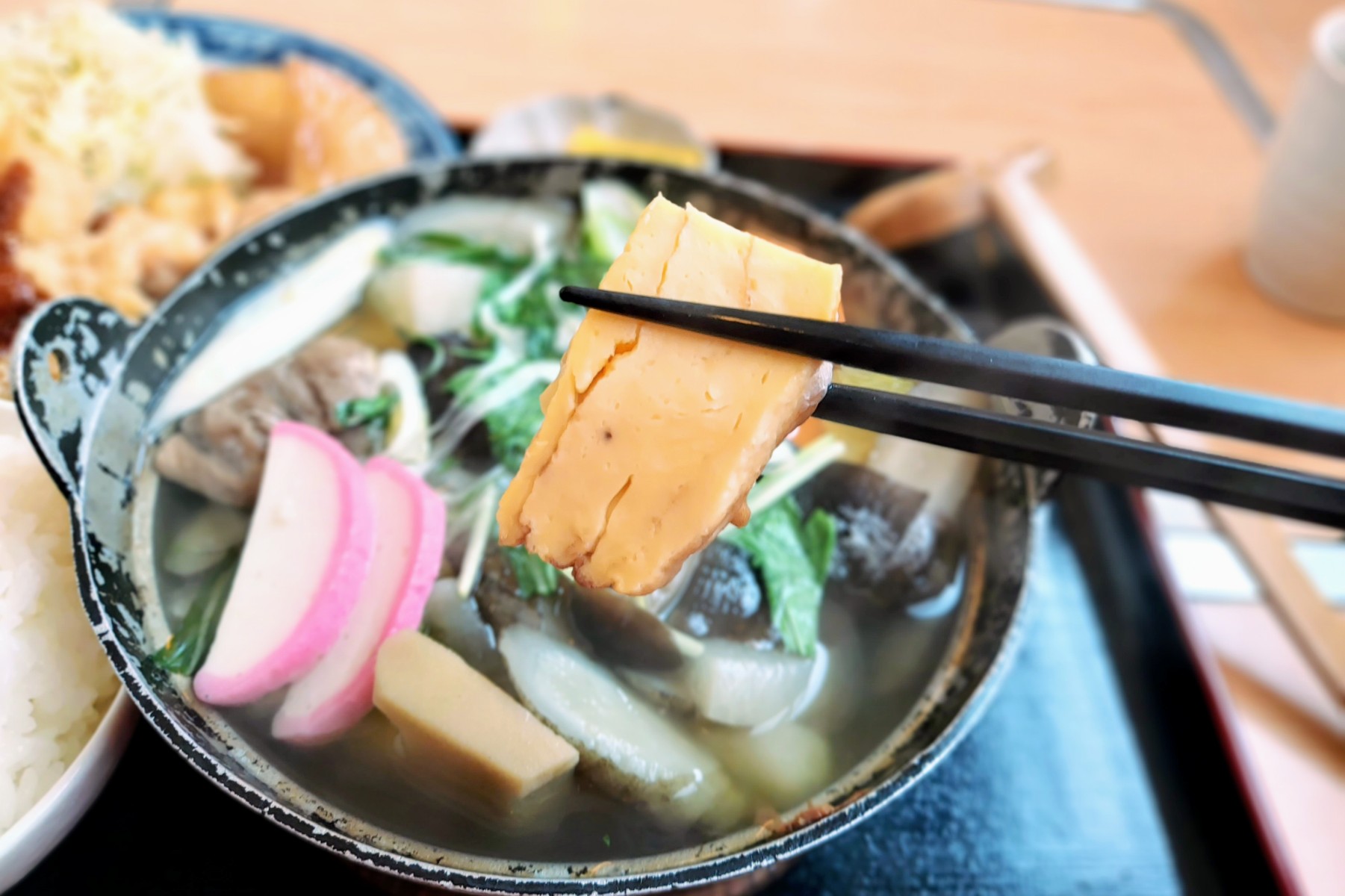 なかむらのだご汁には玉子焼きが入っています。