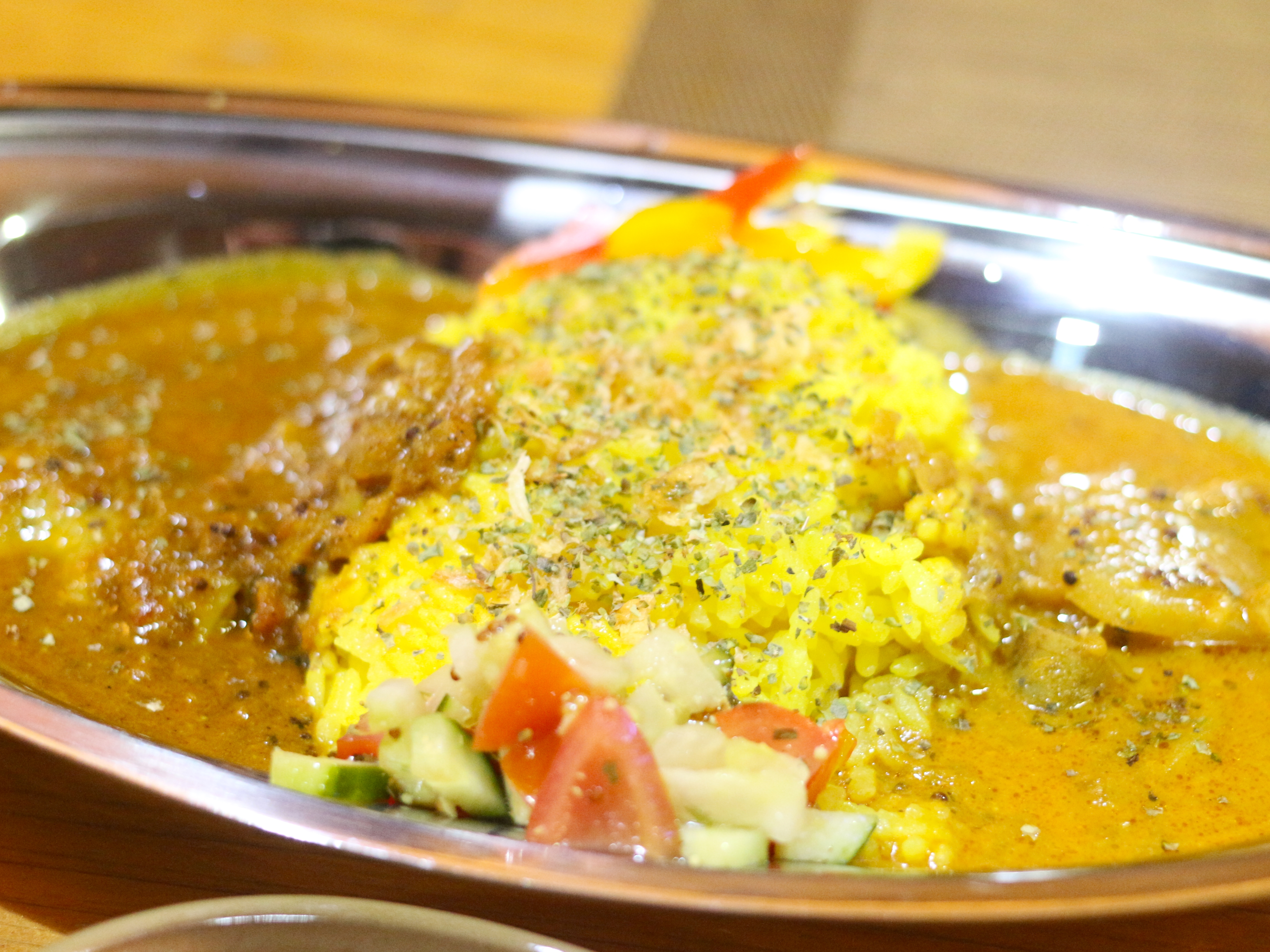 このシルバーのお皿ってカレー感は出るんですけど、ひんやりしているのが難点ですよね。だけど「中村カリー」ではカレーを盛り付ける前に温めてくれます!そのお心遣いが嬉しいですね。