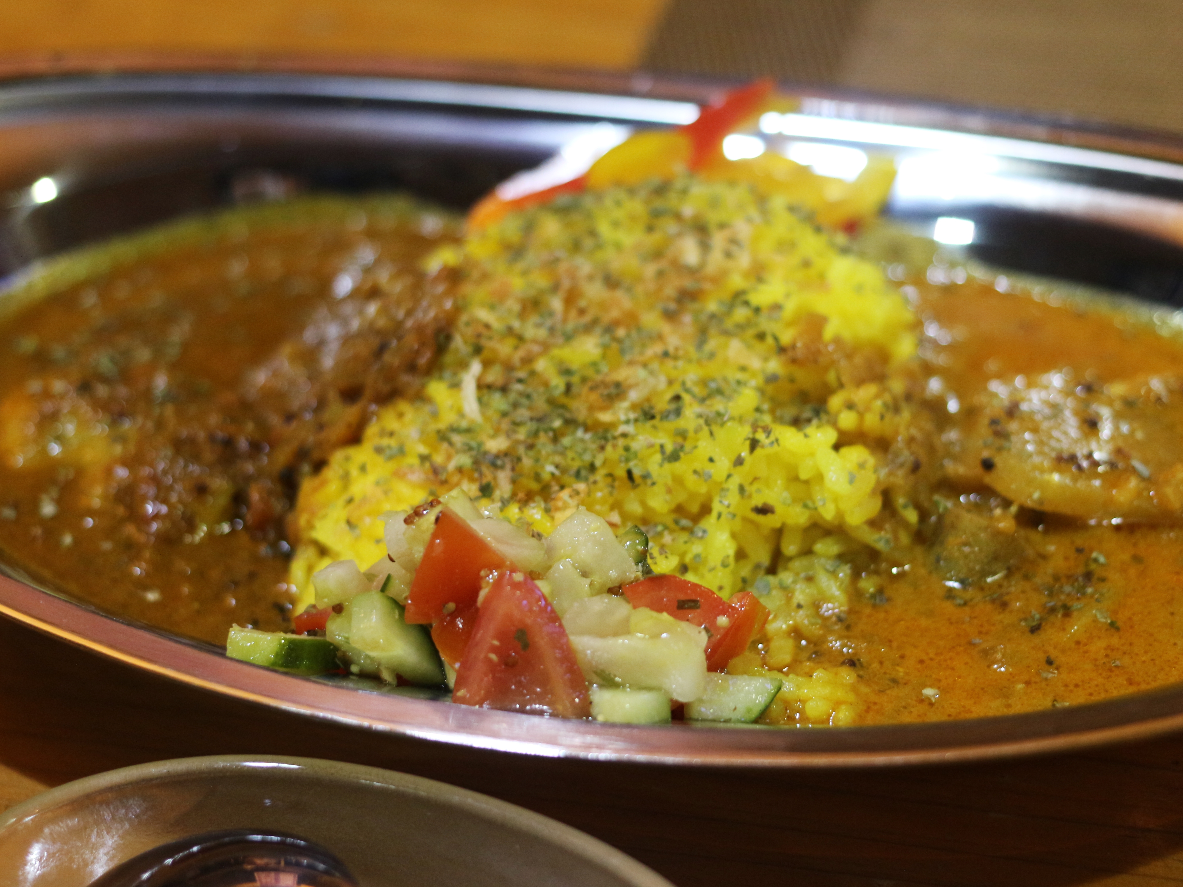 まず、こちらがオリジナルスパイスカレー。口に入れるとガツンとスパイスがやってきます。