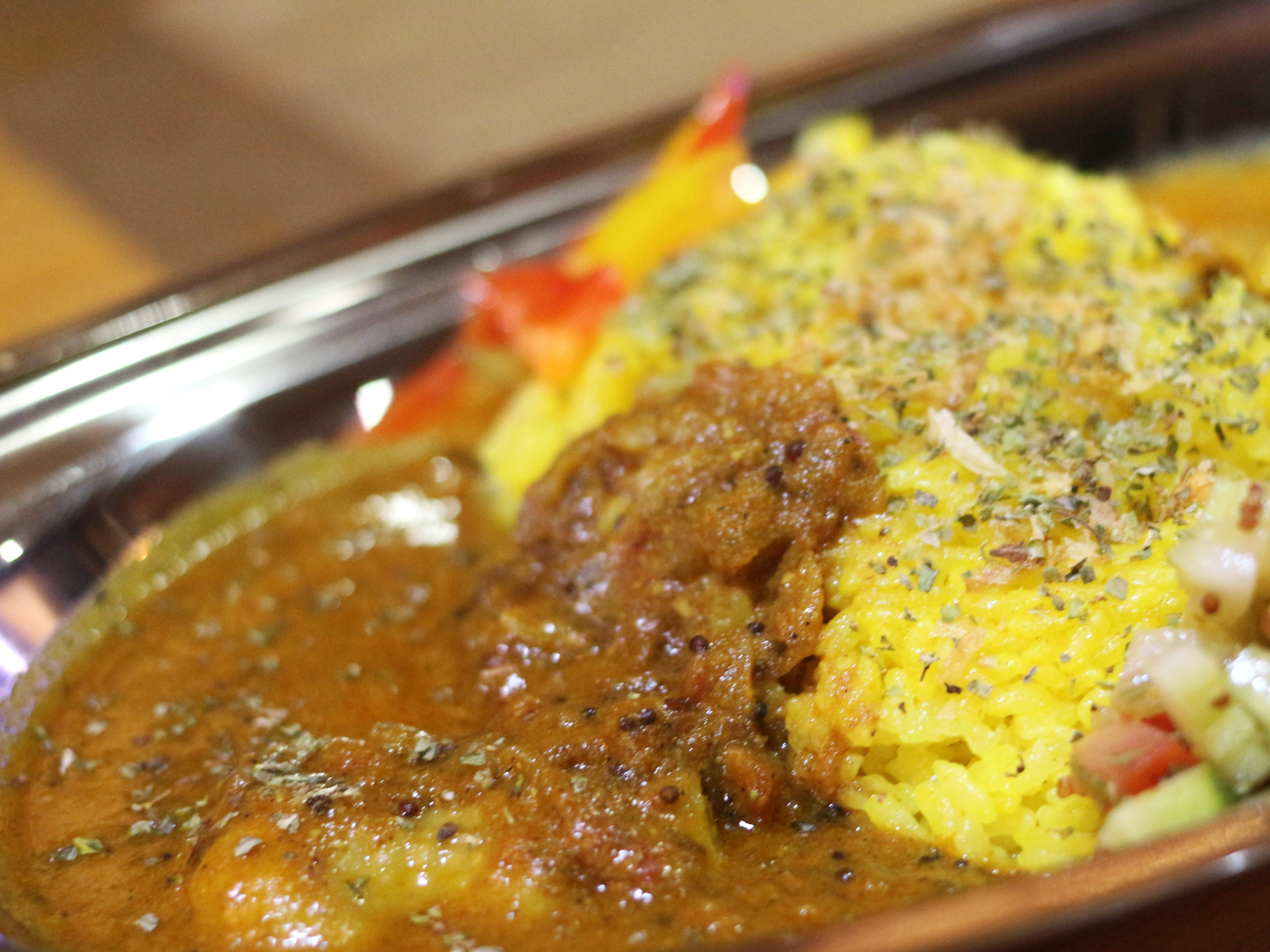 マイルドな口当たりのカレーですが、スパイスをしっかり感じます。辛さもちゃんとあって美味しい。