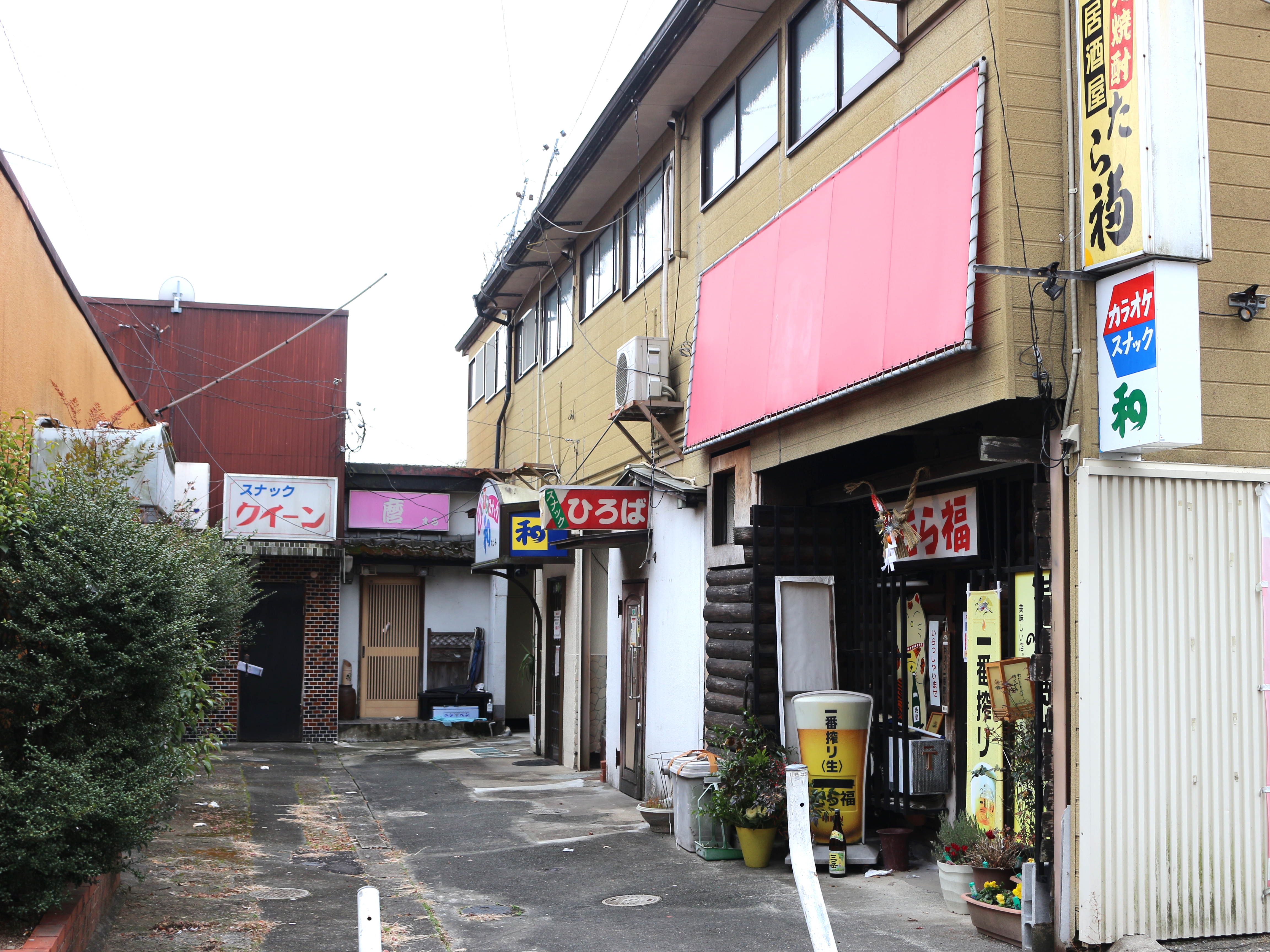 向かったのはメイン通りから脇道へ入った飲食店やスナックが立ち並ぶ通り。
