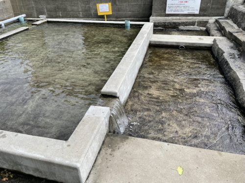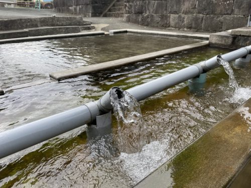 ジョギング途中の方、沢山持ち帰る方、がぽつりぽつりと来られておられました。清掃も行き届いており、とても気持ちの良い場所です。自然の力で勢いよく湧き出しています。
