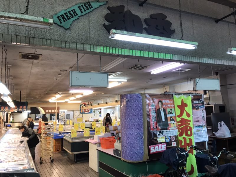 中尾鮮魚は、ほかに、BIGやJUSCOにも入店されており、こちらの方は営業を続けられるそうなので、今回の閉店は和香店のみになります。閉店の理由をお伺いすると、やはり商店街内の店舗は駐車場もなく、お客様にとってアクセスしづらかったことなどが要因とのことです。