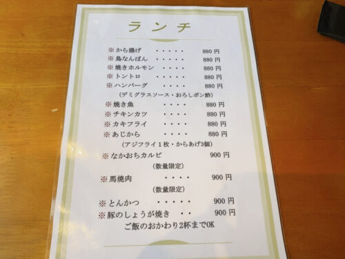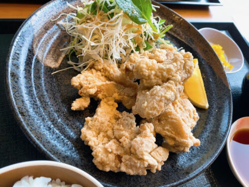 隣のテーブルで学生さんが、から揚げ食べながらワシワシと白米おかわりしていたので、思わず頼んだから揚げ定食(880円)。
