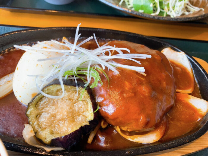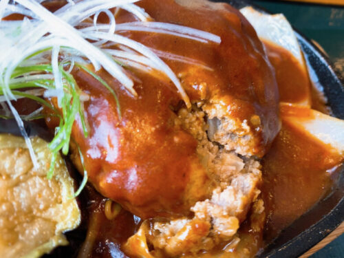 もちろんジューシーさはあるのですが、一口食べて「おぅ…」ってなるほどの脂はなく、これは誰にでも愛されるハンバーグ。食べていてなんだかホッとするような味です。