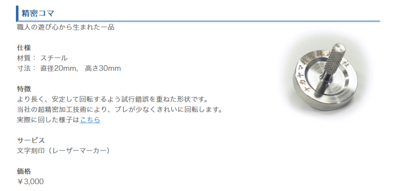 めっちゃ回る精密コマは大人でも地味に楽しめますよ!通販や問い合わせ購入もできるそうです!
