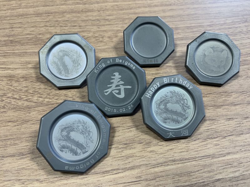 面白いなと作ってみたのですが、G2という硬度で作ってるのですが、最強のベーゴマ同士ぶつかると割れるんですよね。もう少し硬度を落とせば割れにくくなるので、改良の余地があります。文字も入れられるので贈り物や記念品などで購入される方が多いですよ。