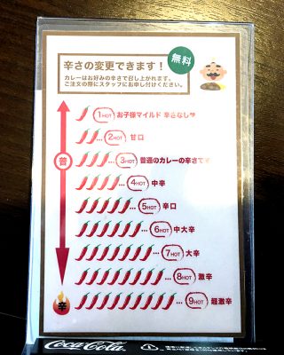 1から9までの辛さがあるそうで、1はお子様用のほぼ辛味無し。9までいくと超激辛です・・・