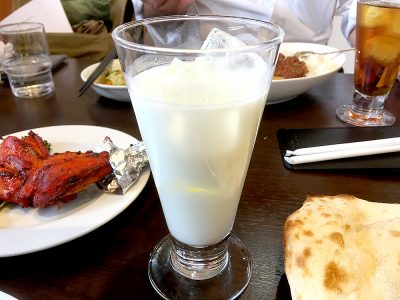 ラッシーもインドの地域などによって濃いさがかなり違うらしいですが、このラッシーはサラリとしたヨーグルトドリンクとなっていました。