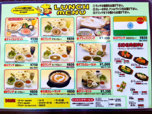 ドリンクは計8種類の中から選べますが、+100円でマンゴーラッシーに変更することも可能です。