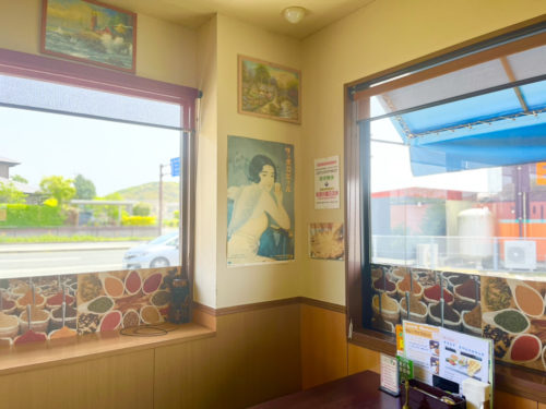 インドっぽいのに、なぜか懐かしい雰囲気。やけに昭和感あふれるポスターや神棚、「本日のカレー」看板の文字など、