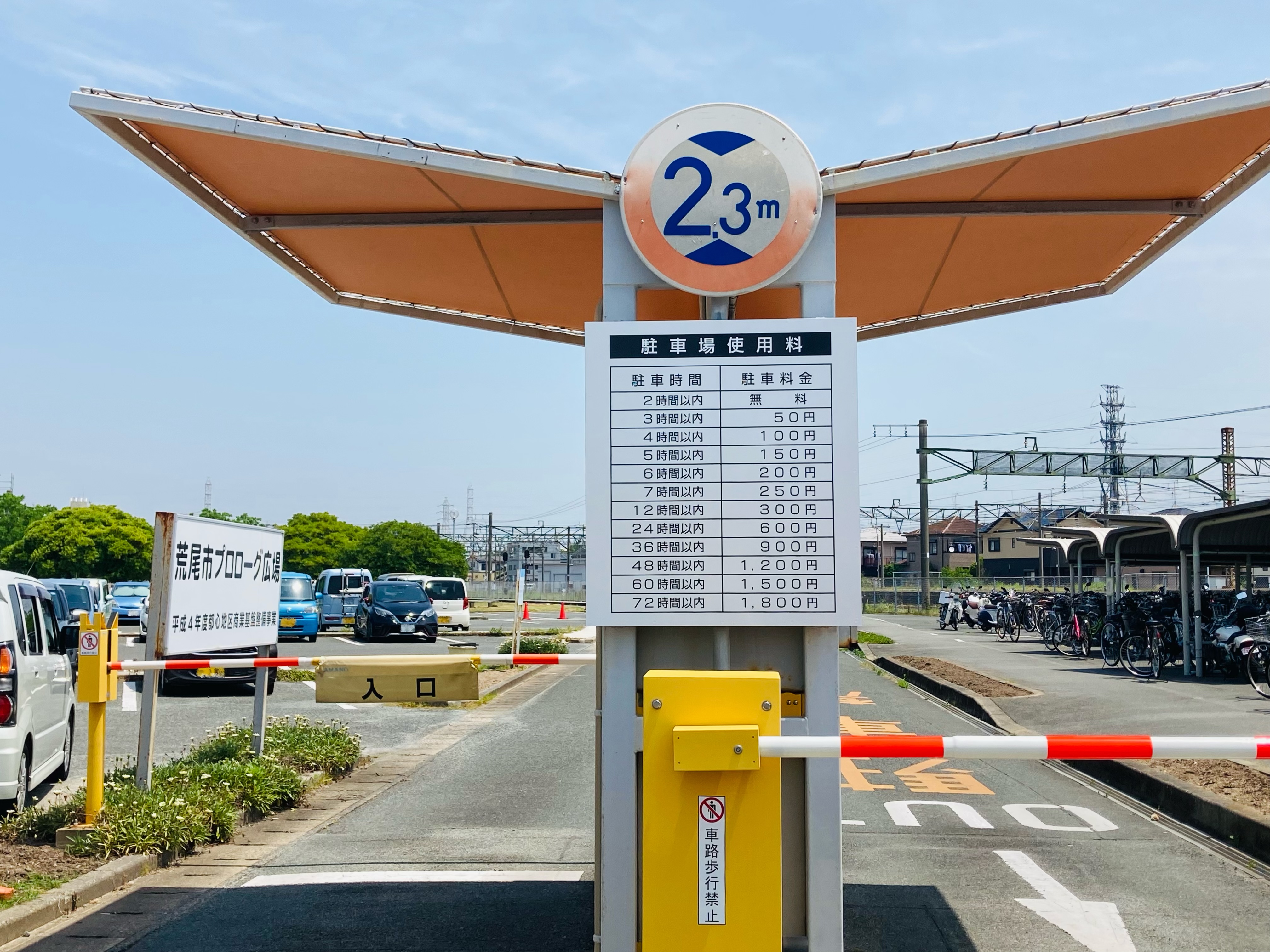 今回もこちらにお世話になります。荒尾市プロローグ広場駐車場。利用時間2時間まで無料です。