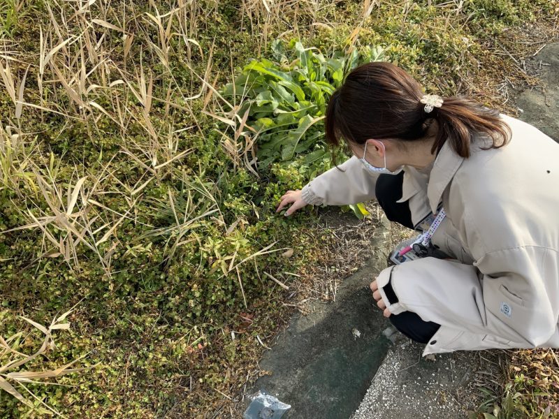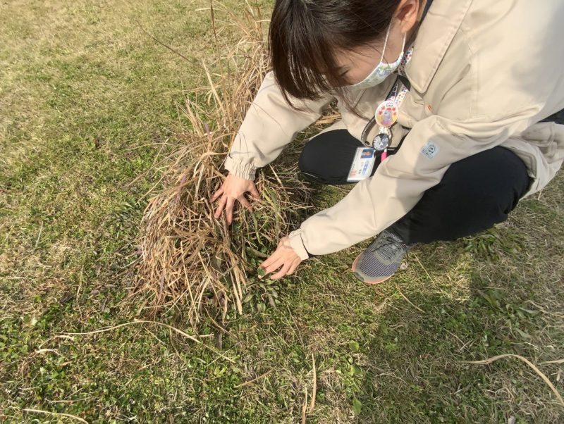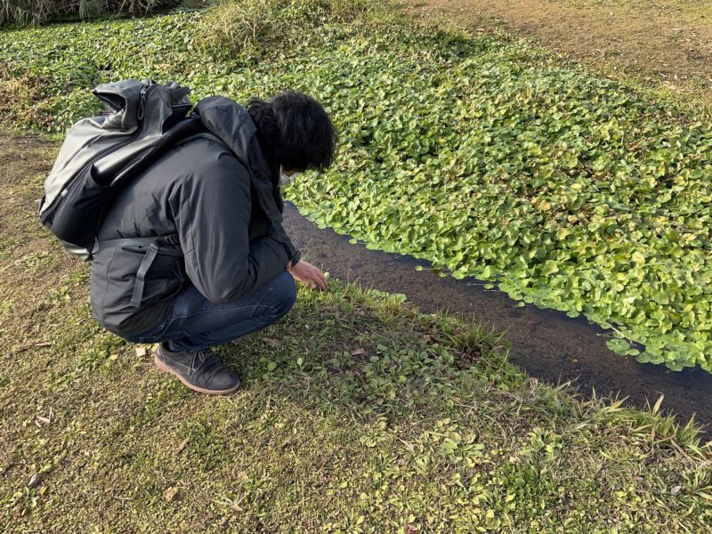 「毎年、1月の下旬に江津湖で七草を探しているので、昨年生えていた場所を探してみましょう!」という学芸員さんの心強い言葉に従い、一緒に探します。