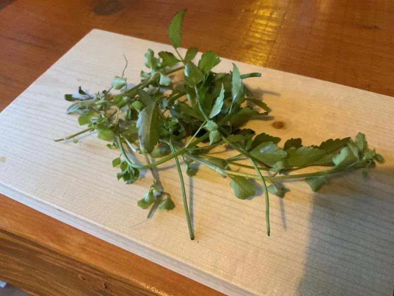青々と生い茂った「せり」など次々に発見。ちなみにかなり珍しいらしいですが、ドクゼリという死に至るほどの毒をもったセリも熊本に自生しているそう。見た目もほとんど同じらしいので、うかつに口にしないことをおすすめします。