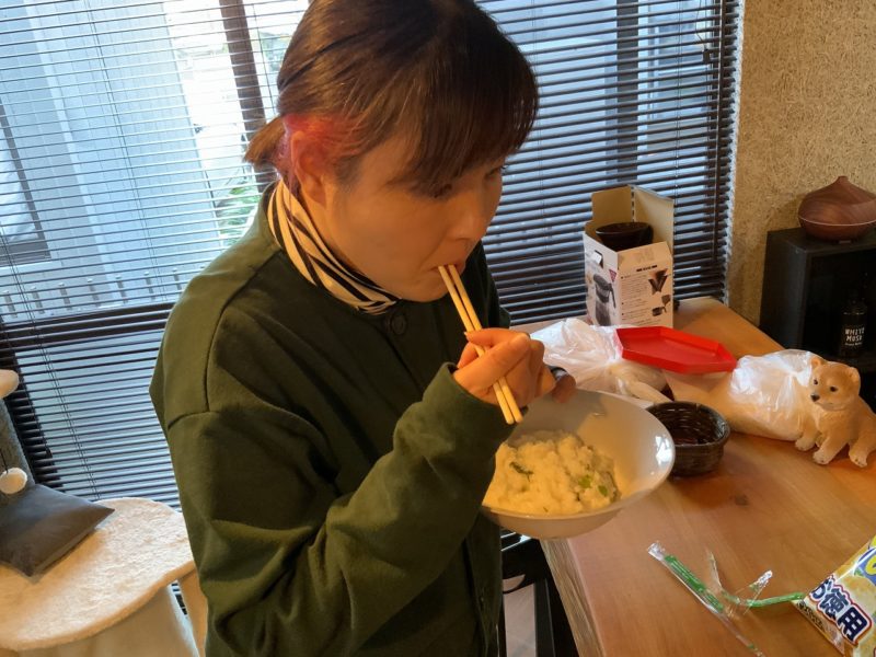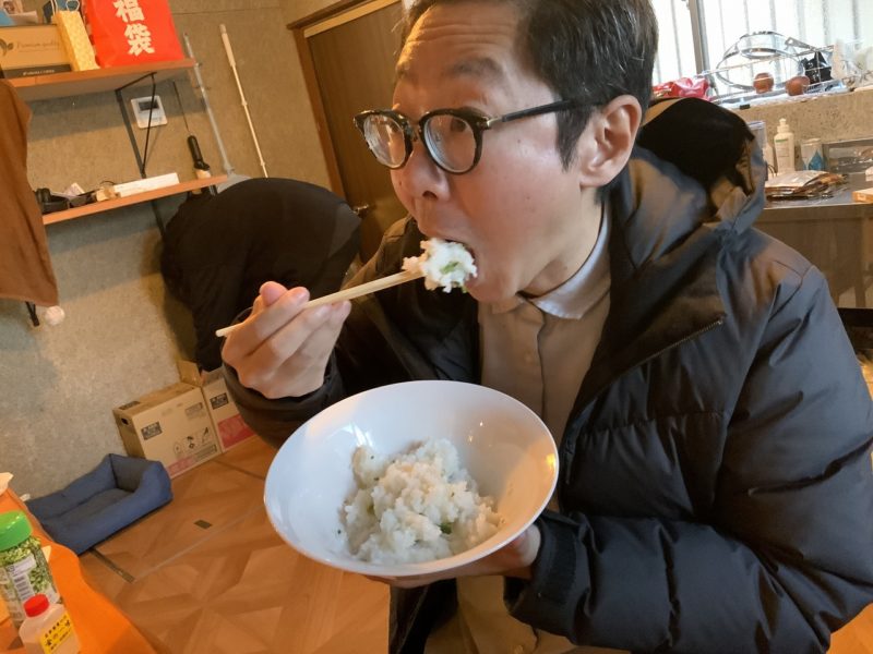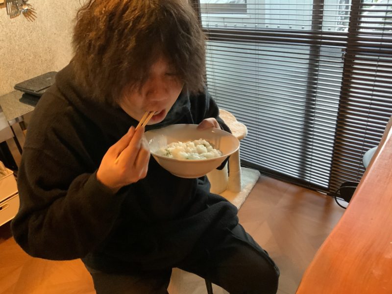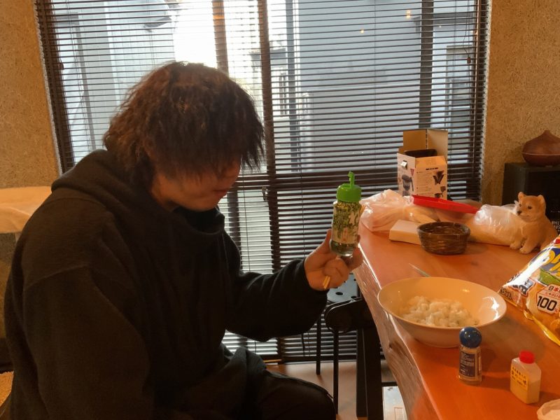 最後に、しゅん。彼はみんなの反応を見て自前のドライネギと岩塩、金の一味を入れ始めました。