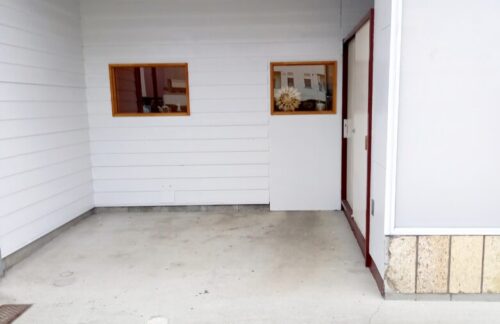 駐車スペースは店舗の扉横に2台分と、扉前に1台分。
