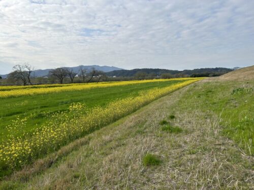 やってきたのは玉名市。菊池川沿いを走る玉名山鹿線をいくと黄色の絨毯が見えるのですぐわかるはず。