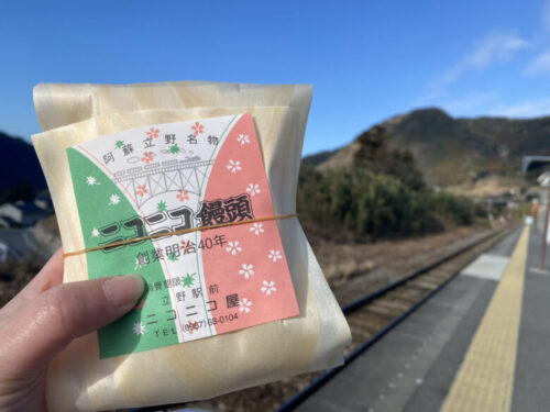 立野駅から乗車するなら、名物ニコニコ饅頭もお忘れなく。